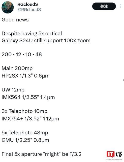 摄影一直是三星手机的强项,S24在这方面更是下足了功夫。冰宇宙透露,S24将配备一颗5000万像素的主摄像头,支持光学防抖和夜景模式,让你在低光环境下也能拍出清晰的照片。此外,S24还拥有一颗1200万像素的超广角镜头和一颗1000万像素的长焦镜头,满足你各种拍摄需求。而且,S24还支持8K视频录制,让你轻松记录生活中的每一个精彩瞬间。